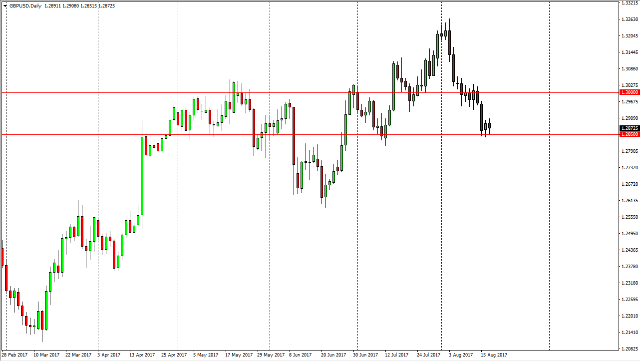 The British pound went back and forth during the day on Thursday, but more importantly found a bit of support at the 1.2850 level. I think that the market could bounce from here, but the 1.30 level above will be rather resistive. With this in mind, I believe that the market will eventually find some type of trouble over there, so I think a short-term rally may becoming but I would expect the sellers to step in rather quickly. I have no interest in buying, and I believe that a breakdown below the 1.2850 level has this market dropping significantly. Either way, I expect that we will see a lot of volatility, and if we can break down below here we should go looking towards the 1.2650 level which is even more supportive. Currently, I think there’s far too much bearishness and the British pound to consider buying it, and I will do so until we break above the 1.3050 level.