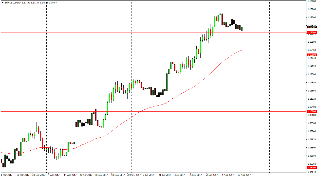 The EUR/USD pair use the 1.17 level for stability on Friday, as we continue to find buyers in this general vicinity. Because of this, I believe that the market is going to rally given enough time, perhaps reaching towards the 1.19 level above. I think that there is a significant amount of resistance from there to the 1.20 level though, so I expect volatility above. If we did breakdown below the lows of the Thursday session, the market will probably go looking towards the 1.15 level for support. Currently, I have no plans on selling this market as it seems like the buyers have staked their claim in this market, and that the US dollar continues to sell off in general. Breaking above the 1.20 level is going to take a significant amount of support though, so I do not anticipate that it’s going to be easy.