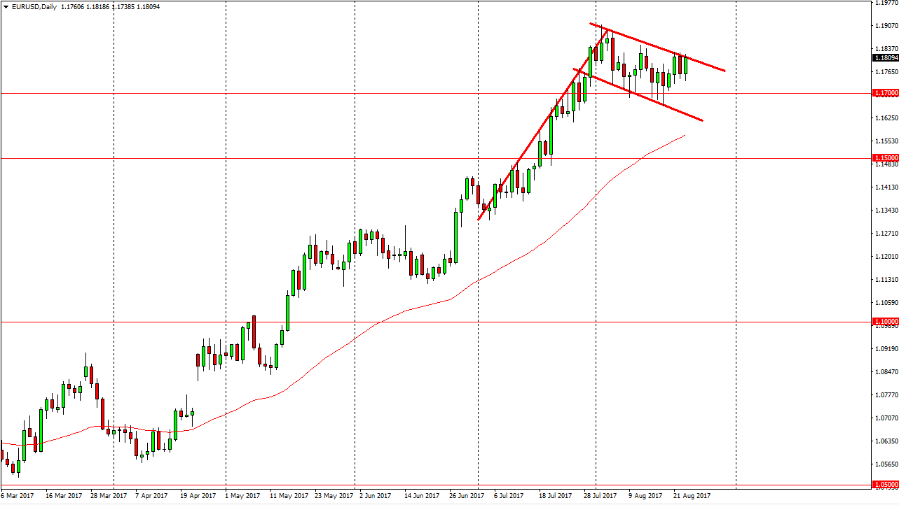 The EUR/USD pair rallied on Wednesday, as the 1.17 level looks to be supportive yet again. Also, we got decent industrial production numbers coming out of the EU, so that of course helps the value of the currency as well. Ultimately, Mario Draghi didn’t say much about the currency itself, so that gave traders a little bit of relief. With this, I believe that short-term pullbacks continue to be buying opportunities, but most importantly, you can see that I have a bullish flag drawn out on the chart as well. I think that if we can break above the top of the range for the day, this pair should continue to go much higher, with a move that measures to roughly 1.24 above. Ultimately, I think that this market is in an uptrend, so buying short-term pullbacks should continue to be the way forward.