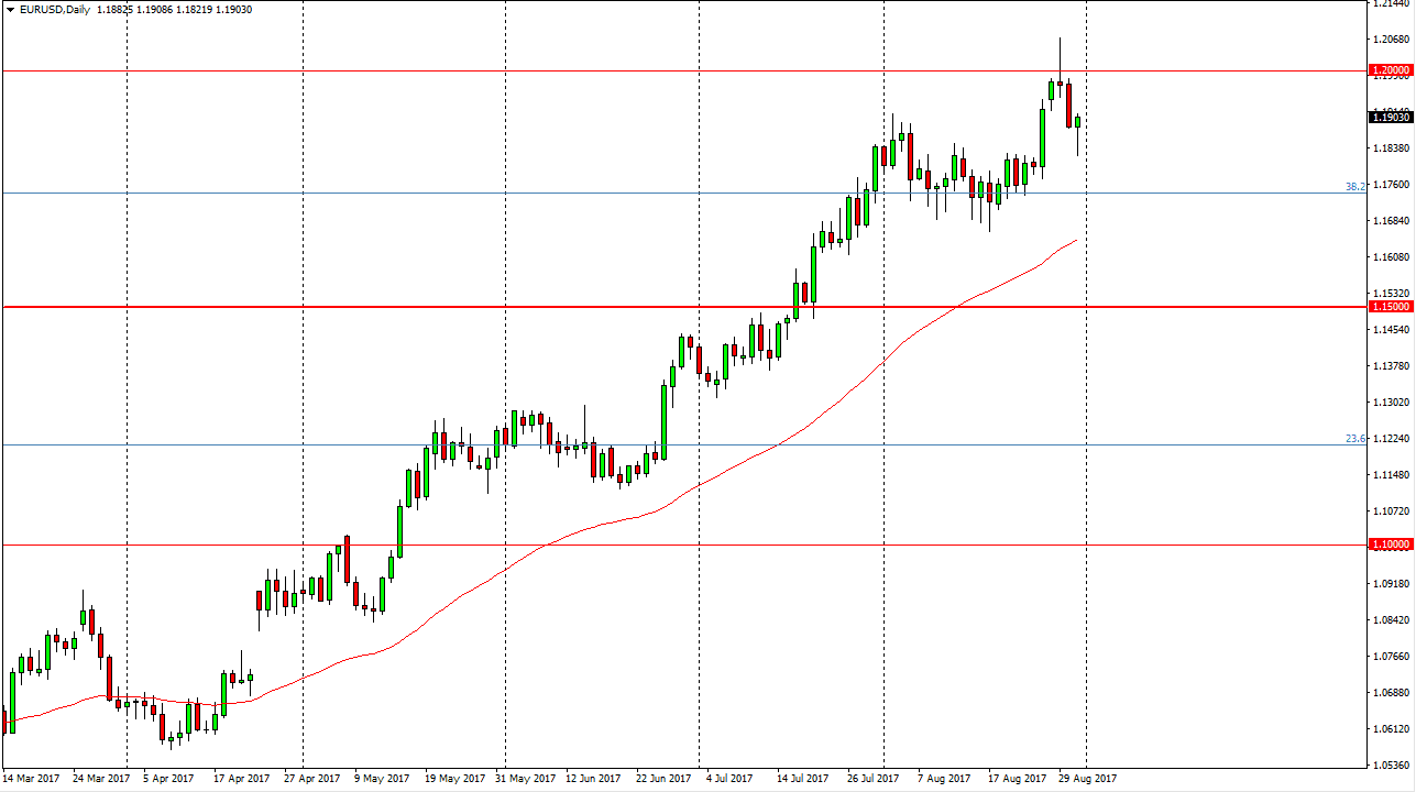 The EUR/USD pair fell during most of the session on Thursday, but found enough support below the 1.19 level to turn around and form a hammer. This is a market that looks very bullish, and has been extraordinarily strong as of late. This pullback and subsequent hammer suggests that the buyers are very much interested in this market, and are willing to get involved. I think that the 1.20 level will be psychologically resistant of course, but in the end, I think we will break above there based upon the longer-term move and the breakout above the consolidation that had lasted 3 years. I still have a target of 1.25, and look at these pullbacks as buying opportunities. Today’s jobs number is going to cause quite a bit of volatility, so be prepared for that.