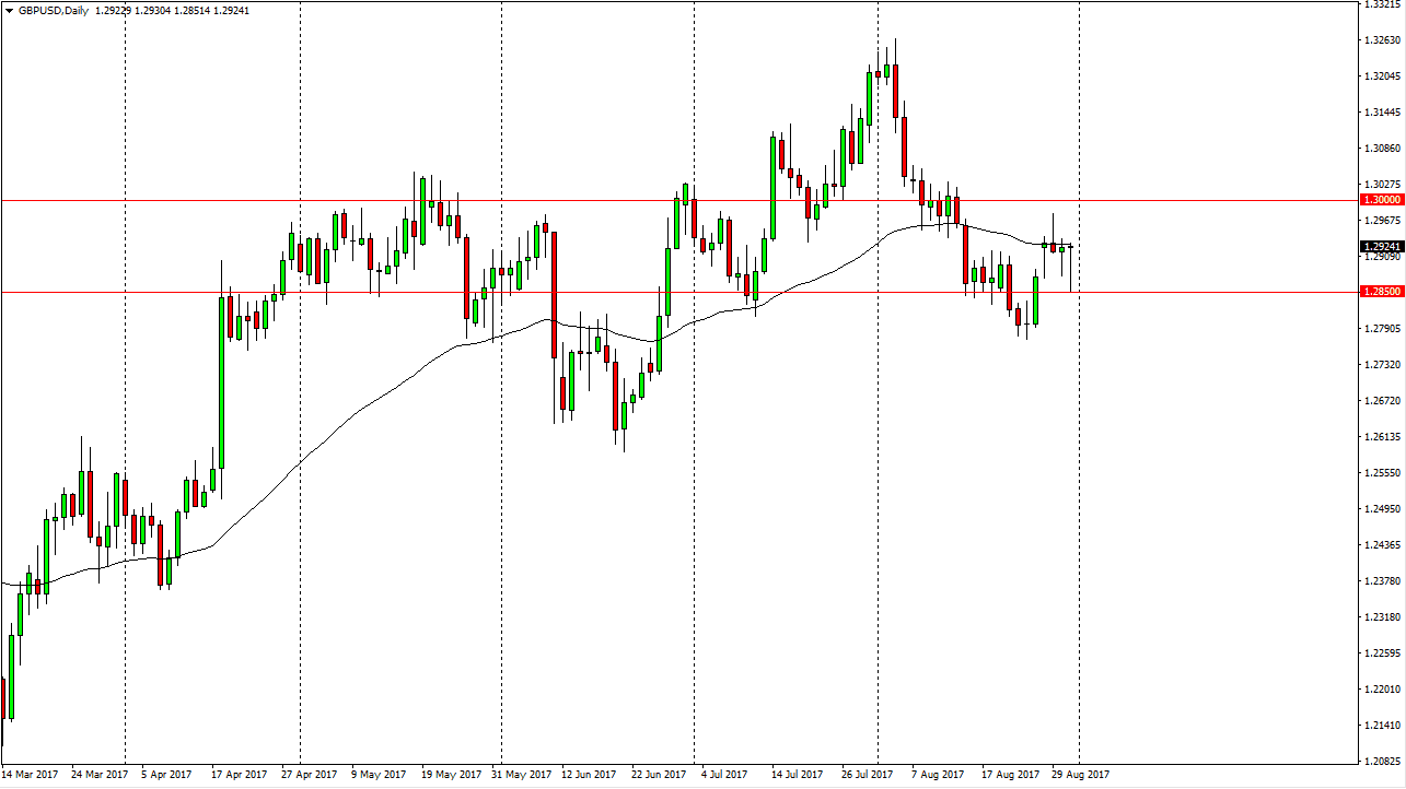 The British pound has been volatile during the Thursday session, falling all the way down to the 1.2850 level but turning around to form a massive hammer. The market has been very undecided over the last several sessions, and I think today could be the catalyst to finally move in a direction. If we break down below the 1.2850 level, the market should go lower, perhaps reaching towards the 1.28 level, and then the 1.27 level. Alternately, if we can break above the 1.3050 level, the market should go much higher. In the meantime, the consolidation should continue and therefore short-term traders will continue to push this market back and forth. If we stay within this area, I think that it’s going to be difficult to place any large positions on, but short-term scalping is probably going to be the way going forward. Ultimately, we need to make a decision, and hopefully the nonfarm payroll announcement will do that.