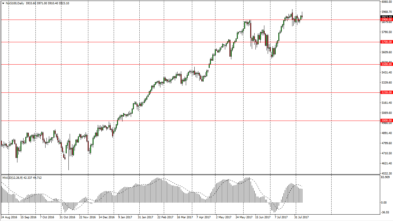 The NASDAQ 100 tried to rally during the day but gave back the gains to form a shooting star. The MACD is starting to show a little bit of weakness, and I believe that we need to pull back. I think this is true with stock markets in general, and a correction seems to be on the way. That does not mean that I’m willing to short this market, it means I am on the sidelines waiting for value. I would look at the daily chart for signs of life, and then take advantage of them. I think that eventually we will go looking for the 6000 handle, but it’s not going to be today. The turnaround laid during the trading session on Tuesday was a very negative sign after we had initially rallied so hard when the Americans got on board. I think we will have volatility, but you would not be blamed for sitting on the sidelines.