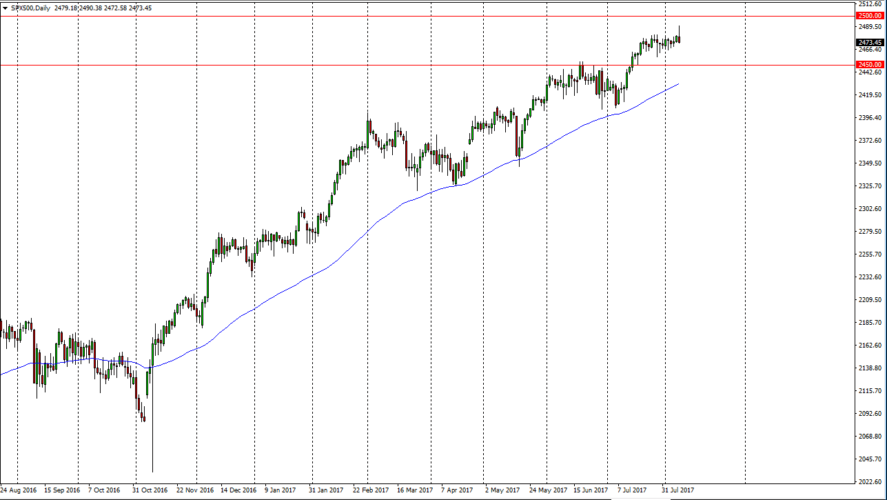 The S&P 500 initially tried to rally but turned around to form a massive shooting star. Even with the largest JOLTS announcement to ever come out of the United States, we could not hang on to the gains. While I am not looking for some type of melt down, I believe that the S&P 500 is getting very exhausted, and at this point needs to pull back. I would look for support near the 2450 handle, and then below there at the 2400 level. I think that eventually we will break above the 2500 handle above, but quite frankly we don’t have the momentum or energy to do so. With this, I am fairly ambivalent when it comes to the S&P 500 and will be looking for short-term displacement a price to trade against anything beyond standard deviation.