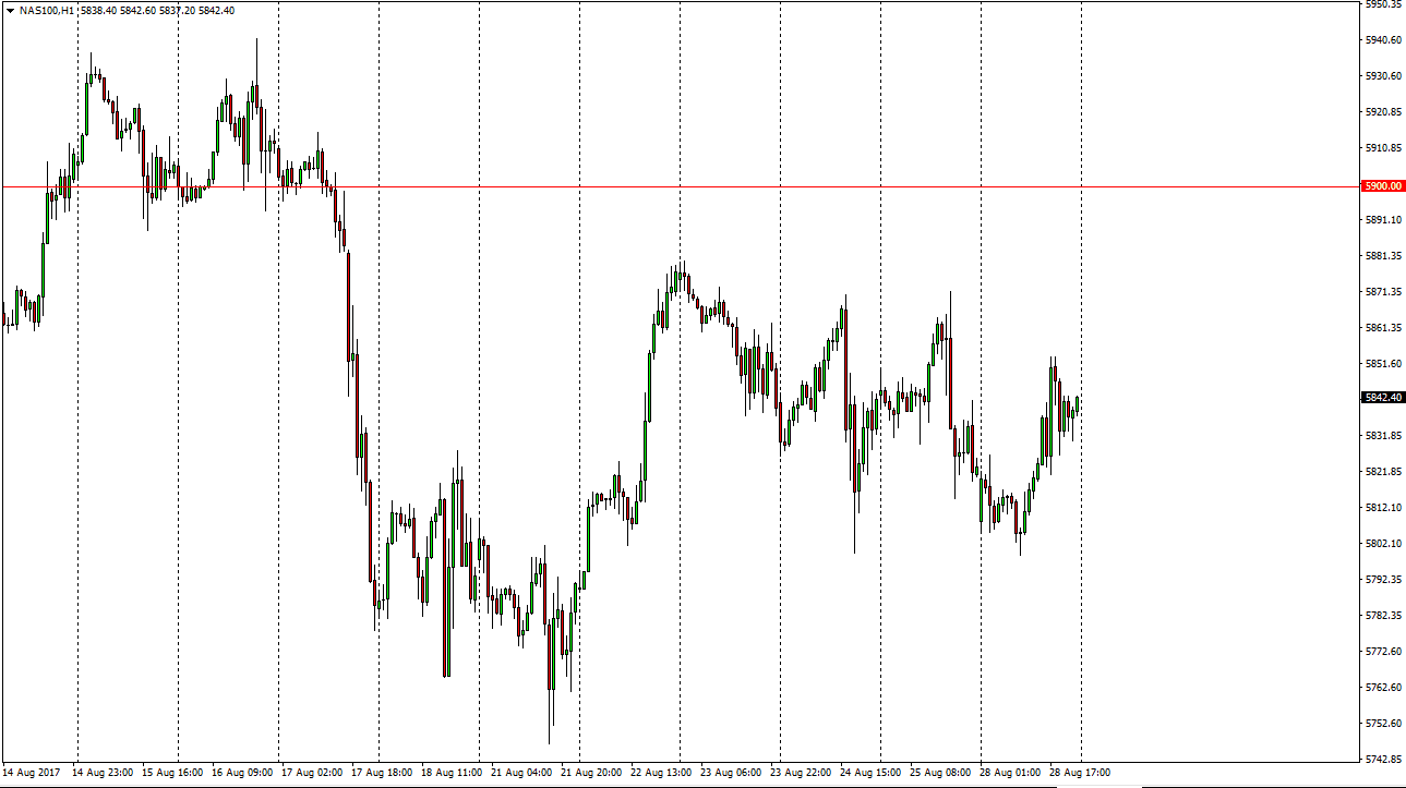 The NASDAQ 100 initially dipped during the day, but then bounced significantly from the 5800 level. This is a very bullish sign, and I think that we will eventually grind towards the 900 level, but as you to take time to get there. The jobs number coming out on Friday of course will have an influence as well, but currently it looks as if the NASDAQ 100 is trying to lead the way going forward. If we can finally break above the 5900 level, then that would be a very bullish sign. In the meantime, it looks like a little bit of a sideways malaise is probably what we’re going to get over the next several sessions. With this being the case, buying on dips might work, but they will be short-term moves at best, especially before Friday.