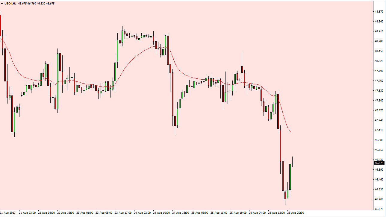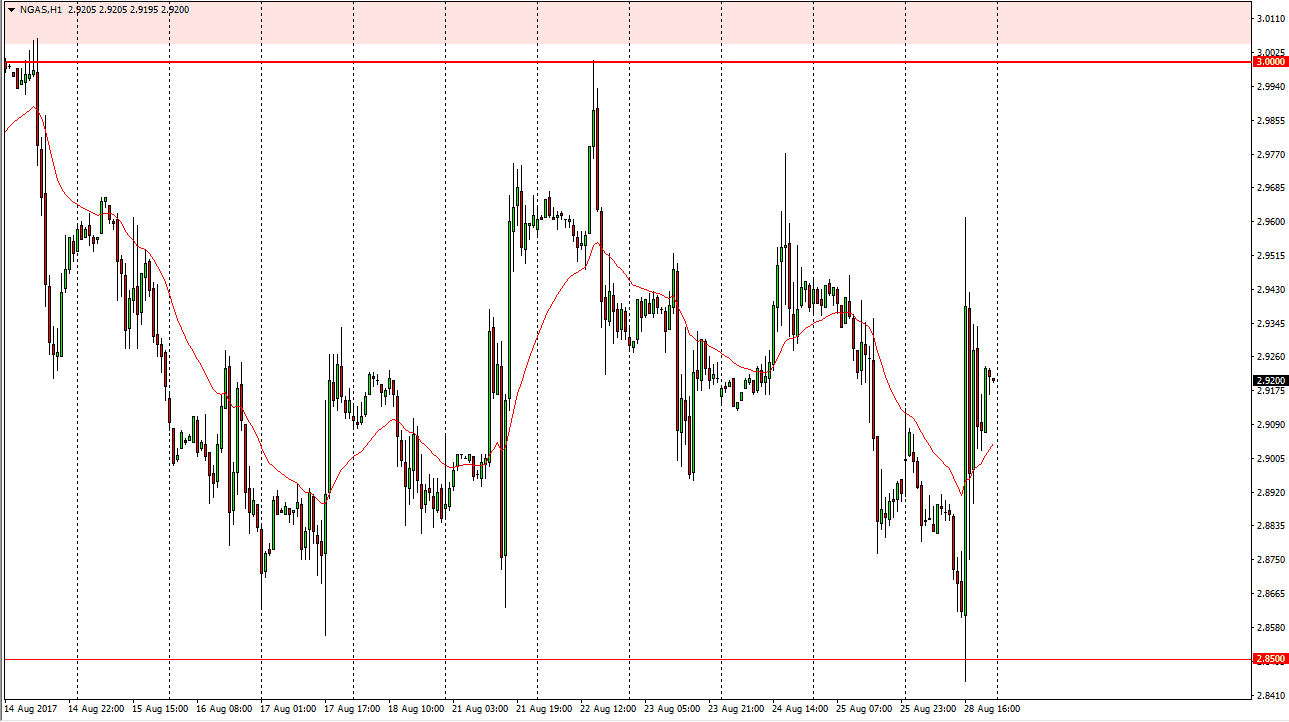 The natural gas markets were extraordinarily volatile during the session after the hurricane Harvey damage became apparent. We had a wild swing in both directions, so having said that it’s likely that the market will continue to be very difficult to deal with. Ultimately, I do like selling natural gas but with the disruption of the major natural gas refining region of the United States, it’s likely that we will see quite a bit of choppiness as traders tried to get a handle on what’s going to happen next. Ultimately, I believe that the natural gas markets will continue to be very bearish, as there is far too much of the commodity out there, but right now I would suspect there could be a bit of choppy and bullish momentum. I do not think that we will break above the $3 level yet though. With this, I continue to look for selling opportunities.