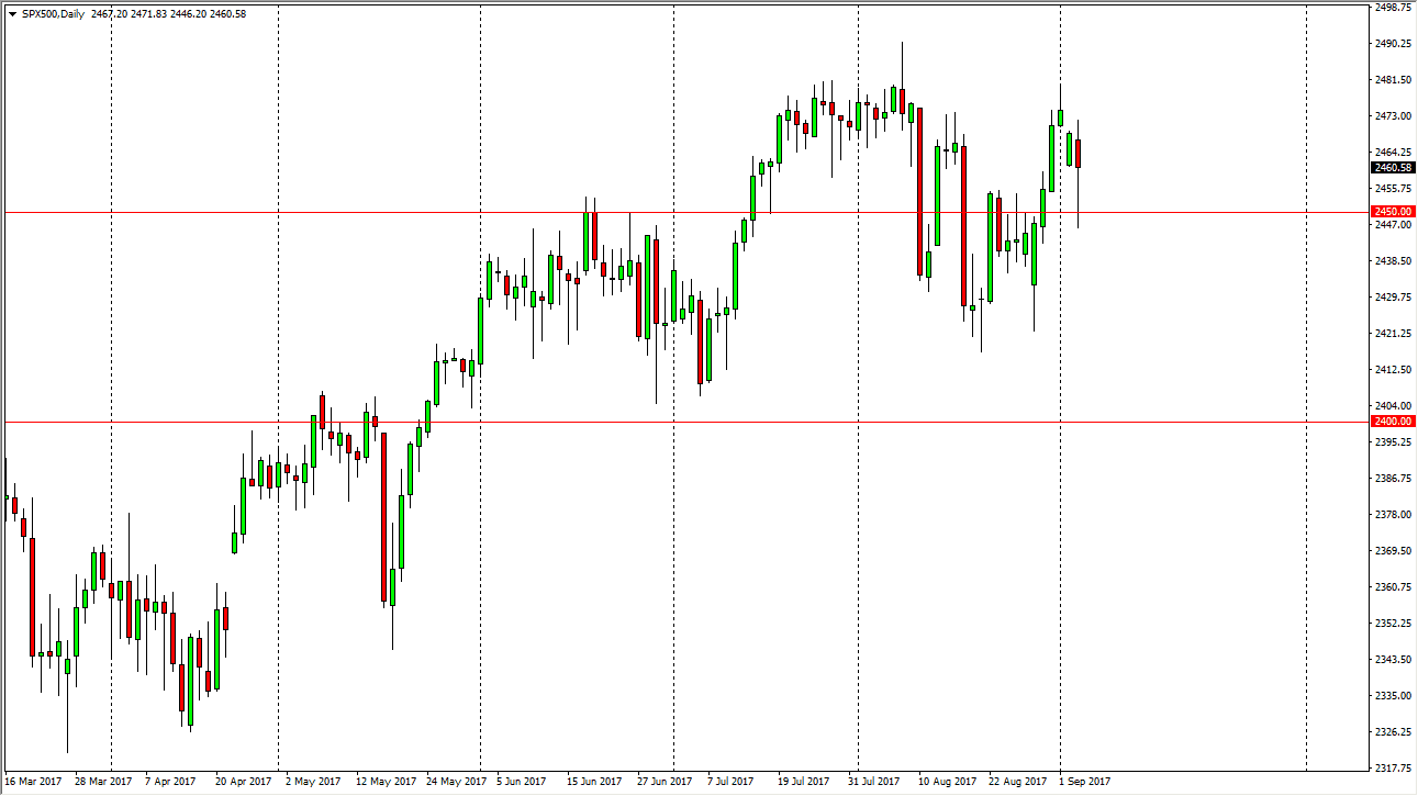 The S&P 500 sold off rather drastically during the session on Tuesday, as US traders came back to work. However, you can see that we found support at the 2450 level and ended up forming a hammer for the day. This shows just how resilient the market is, and with this being the case it’s likely that the algorithms will step back into the market and by each dip. While I think that the market may need to pull back in order to get a nice correction, we may not get that in the short term. Currently, the only thing you can do is buy, as I certainly wouldn’t be shorting this market. This correction that is coming could be soon, but right now I don’t see anything on the charts that suggests it’s coming today.