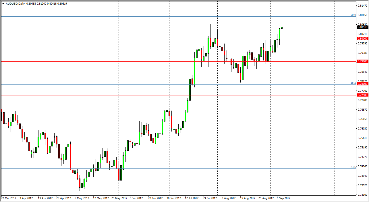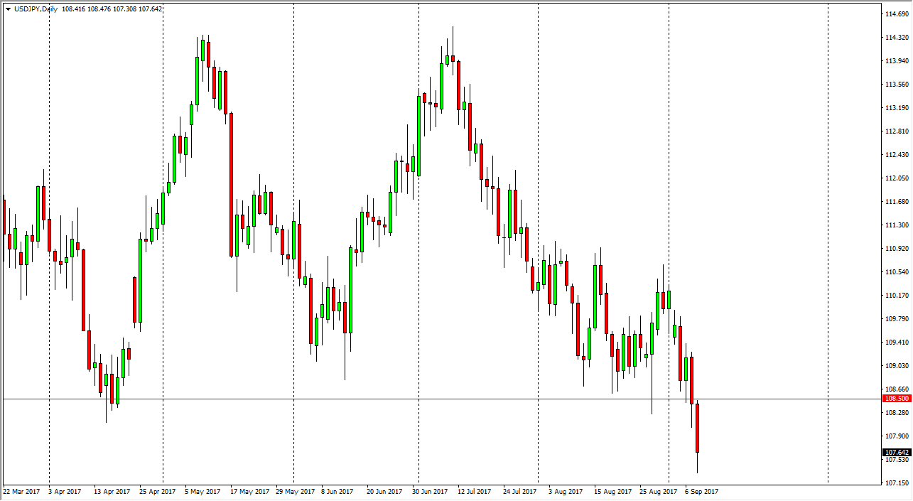 The US dollar fell significantly against the Japanese yen during the Friday session, and more importantly, broke below the 108.50 level. This is a very important development, as it was the bottom of Major consolidation. Now that we have broken below there, I think that short-term rallies should offer selling opportunities as we can go lower, perhaps reaching towards the 105 level over the next several sessions. I don’t have any interest in buying this pair until we break above the 110 handle, which is something that I don’t expect to see. I think that the Federal Reserve is very unlikely to raise interest rates this year after the hurricanes, so having said that it makes sense that this market should continue to go to the downside.