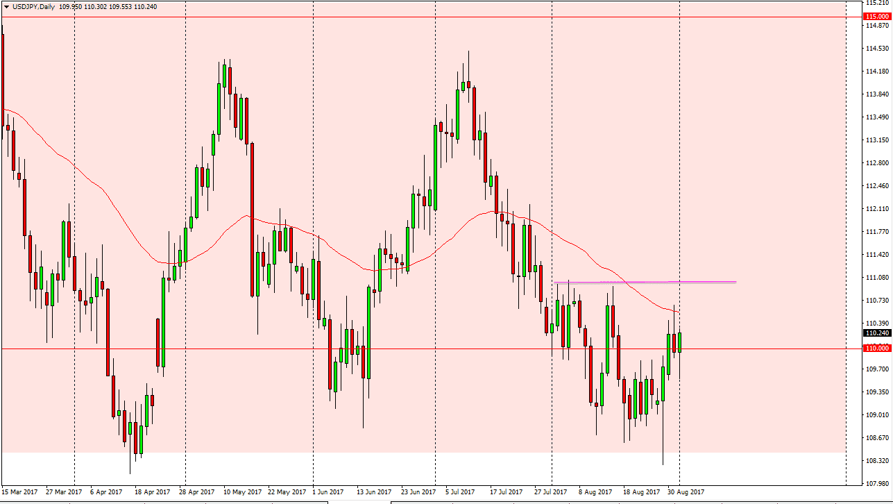 The US dollar had a volatile session on Friday as the jobs number came out less than anticipated. Because of this, the markets sold off rather drastically, but found enough support to turn around and bounce above the 110 level again. By doing so, this shows the resiliency of this market but I also see a significant amount of resistance at the 111 level. Once we break above there, I feel that the market will probably go looking towards the top of the consolidated range, meaning that we should go to the 114.50 level.
