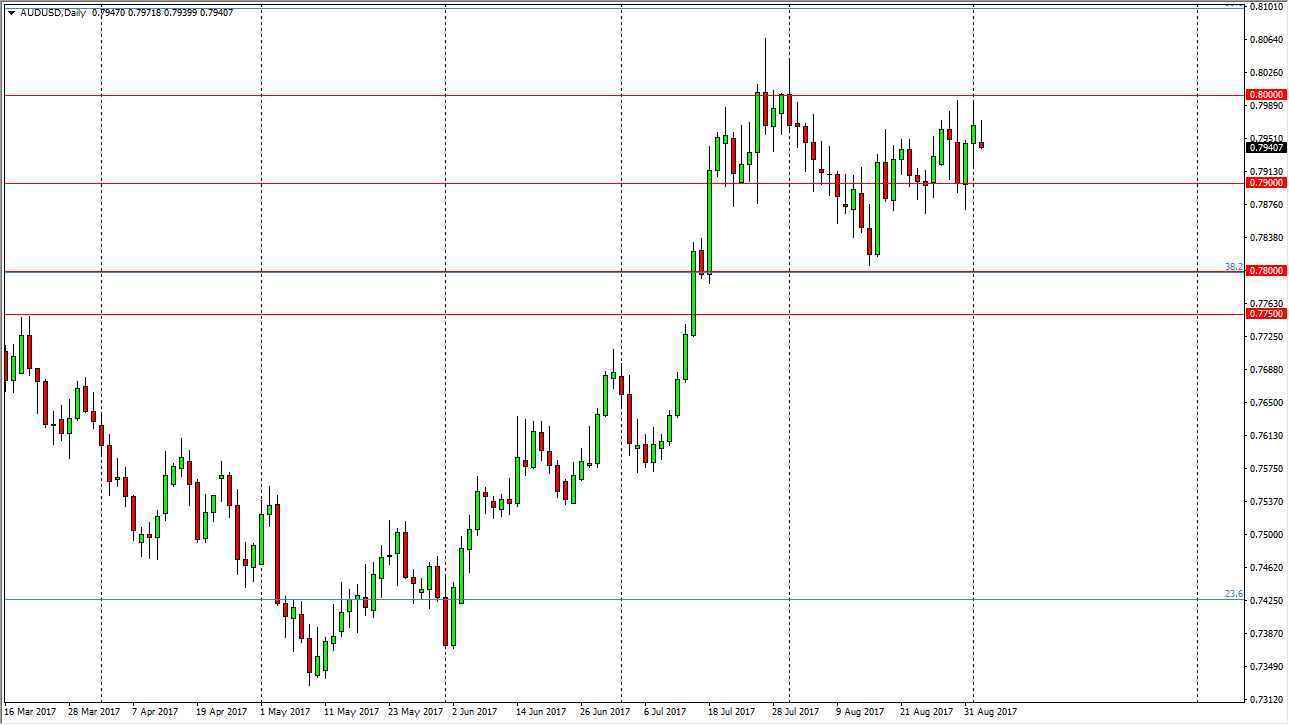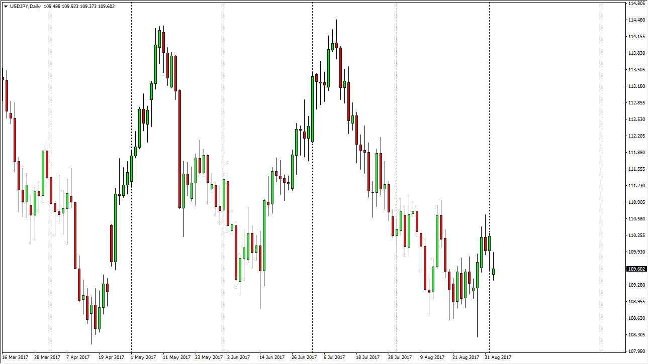 The US dollar gapped lower at the open on Monday against the Japanese yen as the North Koreans tested a nuclear bomb. This had a “flight to safety” effect on the Forex markets, and that generally means that people by the Japanese yen. We have rallied to fill that gap, and ended up forming a less than stellar candle. I think that there is plenty of support down to the 108.50 level though, so I’m waiting to see a supportive candle that I can start buying. Alternately, a break above the 111 level would be reason enough to go long as well. Although we have sold off recently, the reality is that we are still well within a consolidated rectangle. I think it’s only a matter of time before the market goes higher. If we do break down below the 108.50 level, then the market could very well drop to the 105 handle.
