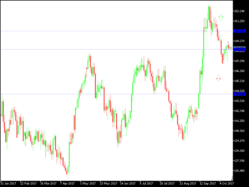 The GBP/JPY pair is still in a bearish area as long it’s moving below the psychological resistance level at 150.00 for 9 consecutive sessions. The pair is n a state of risk avoidance and pushes towards safe heavens led by the JPY with renewed fears of an imminent confrontation between the US and North Korea. The pressure increased on the GBP lately in light of BREXIT negotiation difficulties, based on which the UK Prime Minister, May, again to the EU to revive the BREXIT negotiations in a situation that fits all, after comments from an EU officials that the negotiations with the UK have reached an impasse. This week, the GBP will be the center of attention watching important data from the UK in the form of inflation level and labor work numbers, wages, retail sales and comments on the monetary policy from the Bank of England.