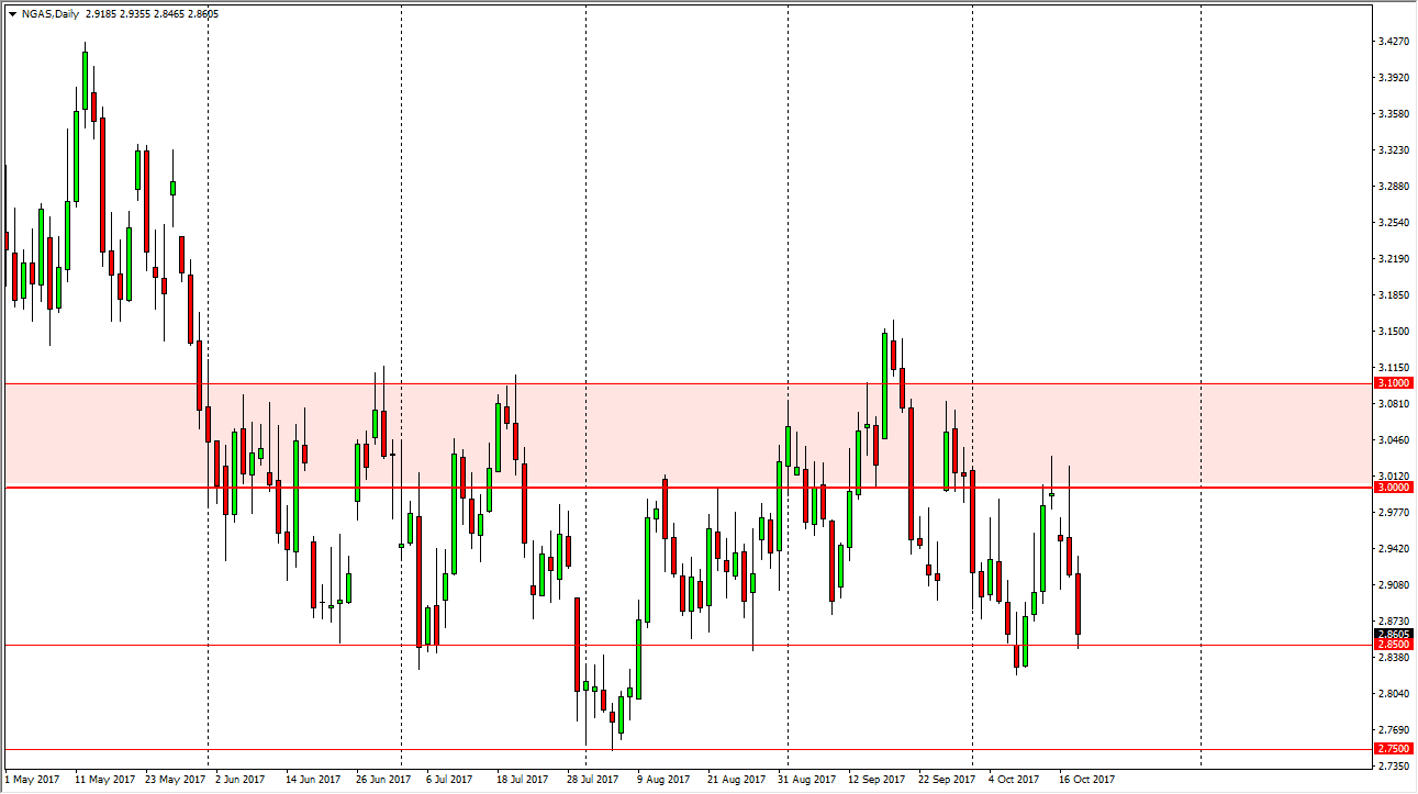Natural gas markets are completely different animal altogether. We have a clear oversupply of natural gas, and every time we get close to the $3 handle, suppliers flood the markets. I think that’s going to continue to be the theme here, as natural gas markets bounce between the $3 level on the top, and the $2.85 level on the bottom. We broke down significantly during the day on Wednesday, so I think a bounce might be coming. However, I’m looking at that bounce as a potential selling opportunity yet again.