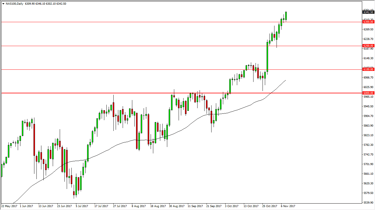 The S&P 500 initially fell during the trading session on Wednesday, but turned around to form a bullish candle. We have been grinding relentlessly towards the 2600 level, and I think that area is certainly the short-term target. The problem of course is that the market has not had a significant pullback in quite some time. Because of this, I think that it is only a matter of time before we get that pullback, perhaps reaching down to the 2550 handle. So, in the short term, I believe that the market will continue to rally, but I also recognize that a pullback must have been relatively soon, otherwise the market could be setting itself up for a very drastic pullback. At this point, I am very suspicious of the rally, although I certainly wouldn’t be a seller.