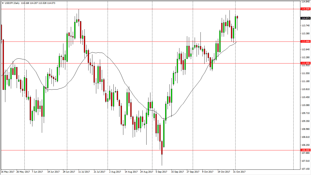 The US dollar initially fell during the trading session on Thursday, but turned around to form a hammer. The hammer is facing significant resistance just above, in the form of the 114.50 level. A break above there sends the market looking towards the 115 handle after that, which I think is a massive barrier. If we can clear the 115 handle, the market then feels much like a market that is ready to go to a much higher level, which I suspect is the 118 handle. I also look at the market as one that could offer value on pullbacks, as I think there is a significant amount of support at the 113 handle. Keep in mind that today is the Nonfarm Payroll announcement, and that of course has a massive influence on the pair. If the number is better than anticipated, it quite often will send this market higher. We are anticipating 310,000 jobs at it for the month of October, so keep that in mind. Overall, I think it’s only a matter of time before we rally anyway.