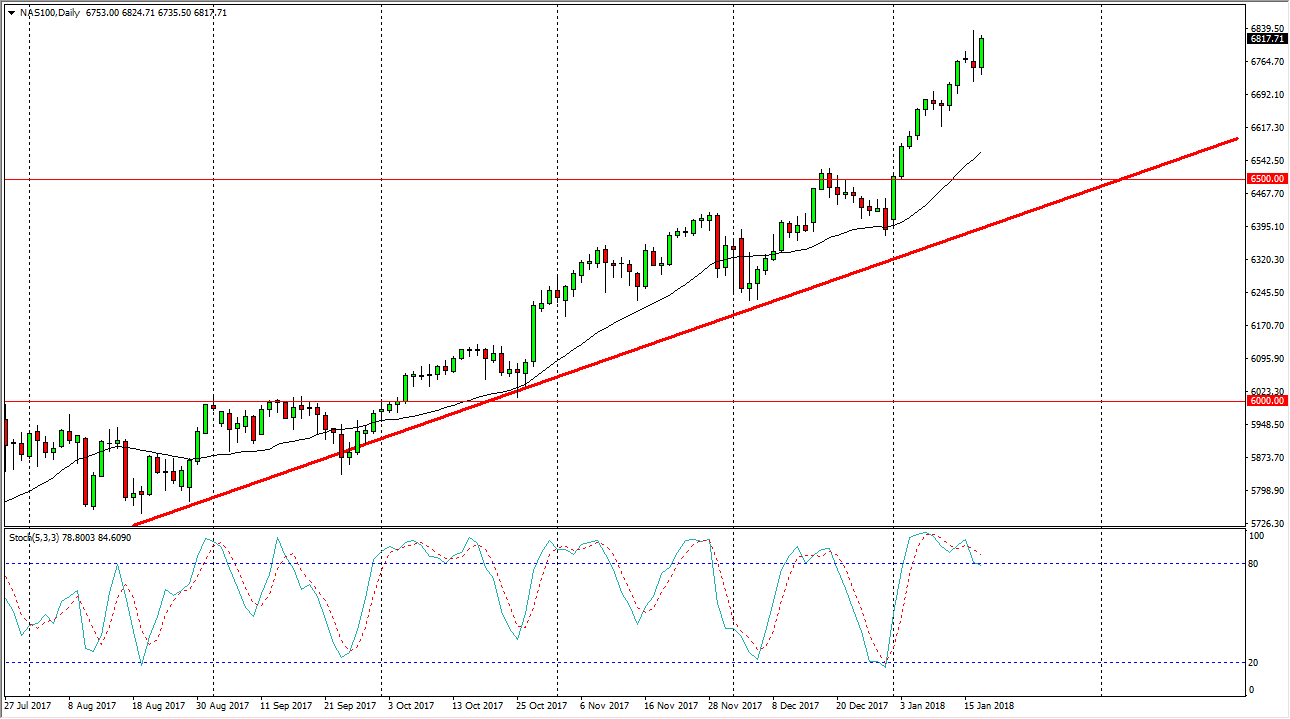 The S&P 500 rallied during the day, reaching towards the 2800 level. That’s an area that should be important, and I think that it should have this market looking towards the 2900 level after that. Longer-term, I anticipate that the market goes to the 3000 handle above, the longer-term target in general. In the meantime, I’m looking for short-term pullbacks as buying opportunities, and it makes sense that we will get them from time to time, especially considering that we are bit overextended. I anticipate that the 2700 level underneath is the floor in this market, and I will continue to be bullish until we break down below that level. Volatility continues to be an issue, but longer-term I think that the buyers will continue to be in control of the situation longer term.