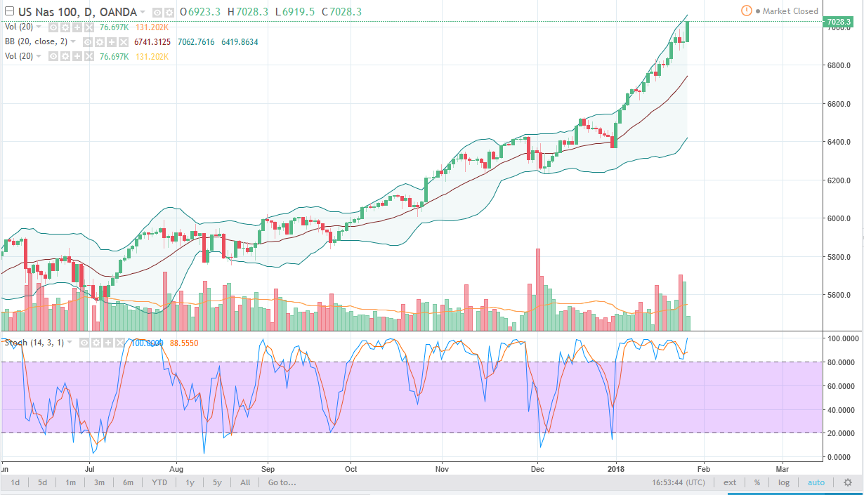 The NASDAQ 100 rallied a bit during the trading session on Friday, breaking out to a fresh, new high, and more importantly - breaking above the 7000 handle. This is a market that continues to extend to the upside and I think that at this point in time if short-term pullbacks are probably necessary to pick up value. Volume was a little bit light during the day on Friday, but ultimately, I think that this market does reach to much higher levels and it starts to look like a market that can lead the rest the United States higher. A “buy on the dips” mentality should be apparent at this point, and I have no interest in shorting. I believe there is a massive “floor” in the uptrend at the 6600 level below, so pullbacks could be very sudden. However, they should all be looked at as value.
