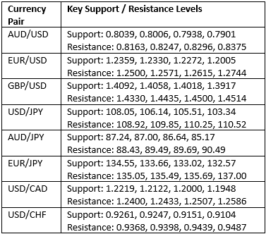 We teach that trades should be entered and exited at or very close to key support and resistance levels. There are certain key support and resistance levels that should be watched on the more popular currency pairs this week, which might result in either reversals or breakouts: