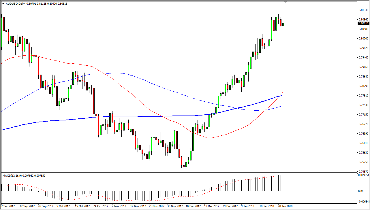 The Australian dollar has formed a neutral candle during the trading session on Tuesday, as we continue to struggle to break above the 0.81 handle. If we can break above there, the market should continue to go even higher, and perhaps reach towards the 0.85 level. The 0.0 level underneath should be massively supportive, as it is a fulcrum for price, and is essentially the place where the market switches from bearish to bullish, going back to the late 1980s. I think that if we can close above the recent highs, the market is probably going to be more of a “buy-and-hold” scenario than anything else. Other than that, I think a pullback should be buying opportunities, assuming that we stay above the vital 0.79 handle which I see as the bottom of this general region of importance.