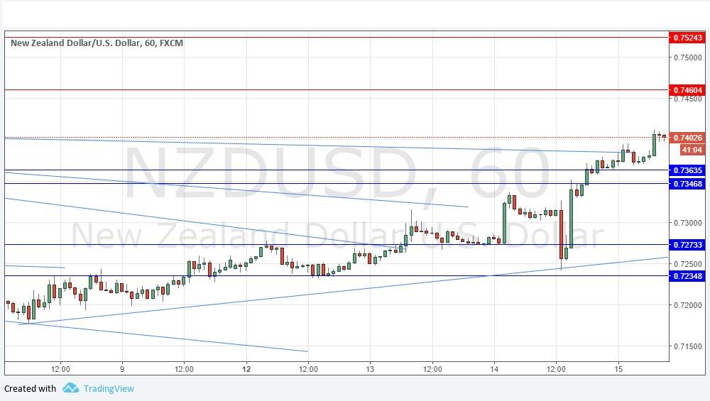 I was correct to take a bullish bias yesterday, and to see a rise to 0.7346 as likely, with the price rising firmly, breaking quite cleanly above a total of three resistance levels. The NZD remains somewhat stronger than the AUD, which is always something to watch out for, and another reason to be bullish. Additionally, the price is in a long-term bullish trend now, and the bullish break of the trend line shown in the price chart below was a major technical development. It should be noted however, that the psychologically critical area around 0.7500 is not far ahead, which the price may find difficult to break quickly or at all.