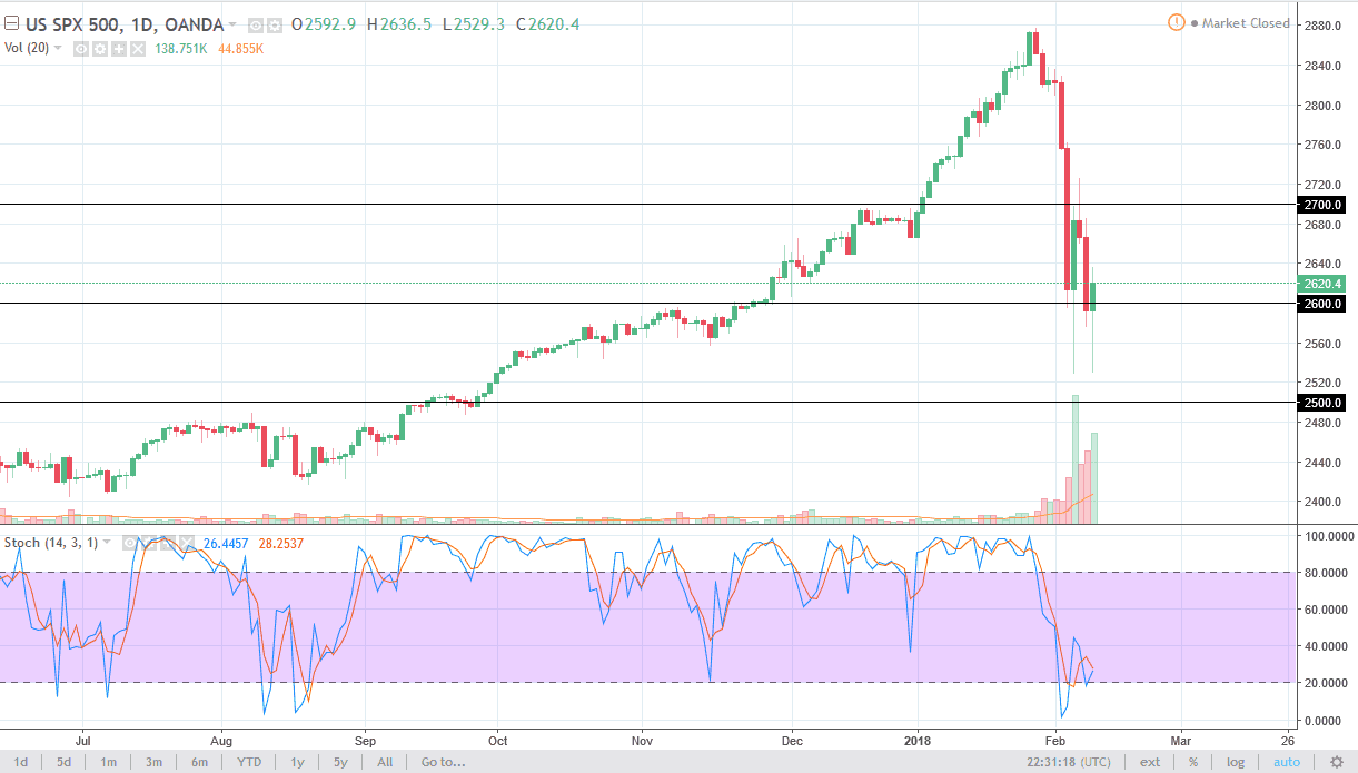 The S&P 500 initially fell during the trading session on Friday yet again, but we continue to find buyers underneath and we have now seen a rebound late during the Friday session. This is a very strong sign, because a large amount of orders came in late during the day, and that signifies institutional buying. The large amount of volume is indicative of the market trying to find a bottom, so I think if we can break above the top of the range for the day, the market should continue to go higher. There has been a lot of damage done, but we closed well, which is a good sign for the upcoming week. Ultimately, I think that the 2500 level is the “bottom of the trend”, and therefore if we break down below there are things get ugly and a very quick amount of time. I do believe in the uptrend, I think eventually we go looking towards the 3000 but we need more confidence building along the way.