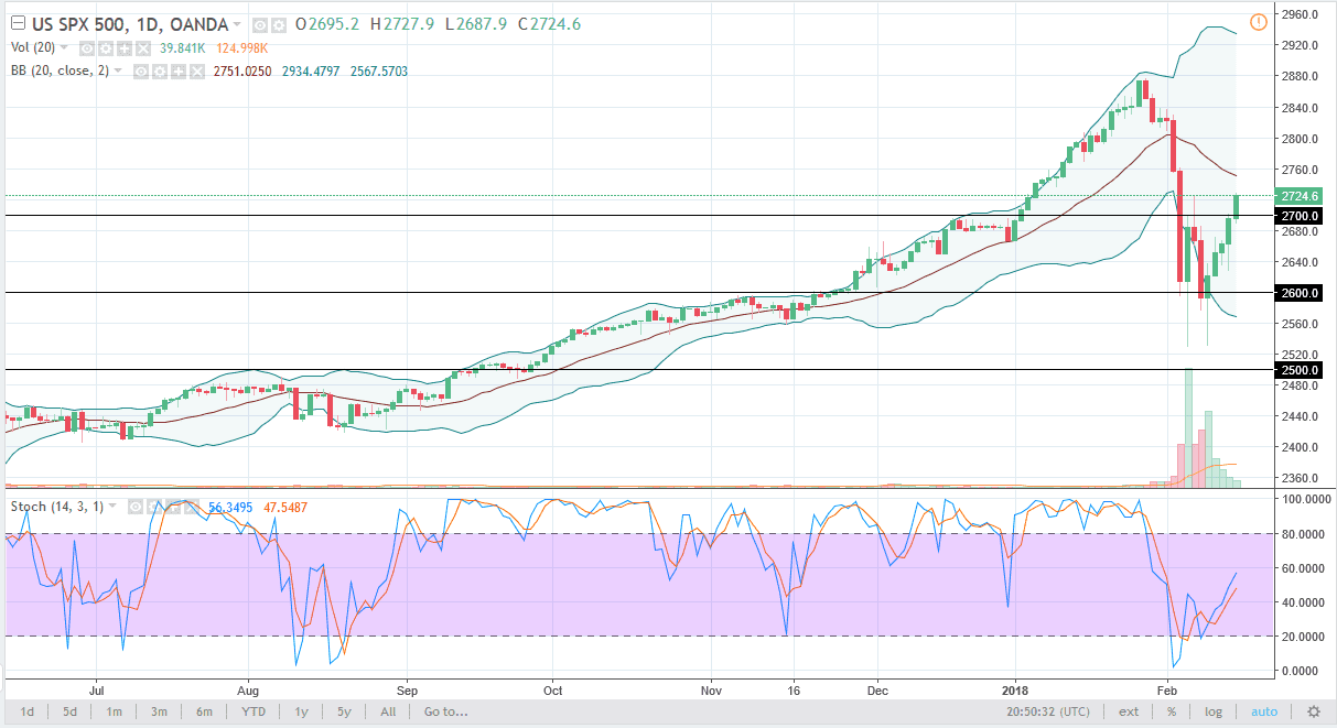 The S&P 500 traders rallied a bit during the trading session on Thursday, breaking significantly above the 2700 level, and pressuring the top of the shooting star from last week. If we can break above there, the market should continue to go much higher, and I think that’s about to happen. If we do get a short-term pullback, it should be a buying opportunity eventually, with the 2700 level possibly offering support. If we break above the top of that shooting star from last week, the market should then go to the 2800 level, and then eventually the highs again. I believe that a lot of larger players have jumped back into the market, and that should help continue to push this market. I have no interest in shorting this market, least not until we break down below the 2600 level, perhaps even the 2500 level which I see as the “floor” of the uptrend.