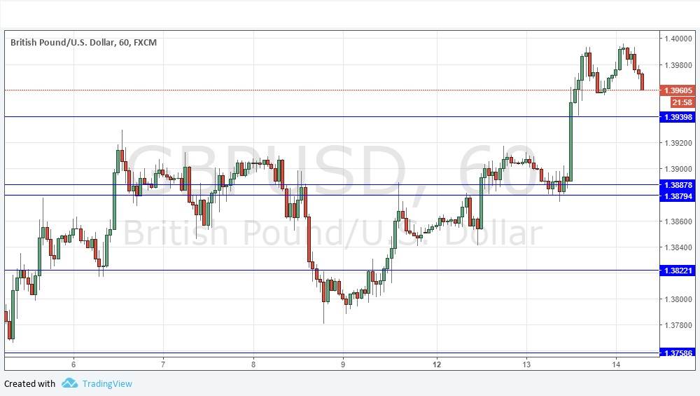 Yesterday’s signals produced an excellent long trade upon the bullish price action at 1.3879, with a small hourly inside candle giving a tight entry. It would be wise to have booked profit by now.