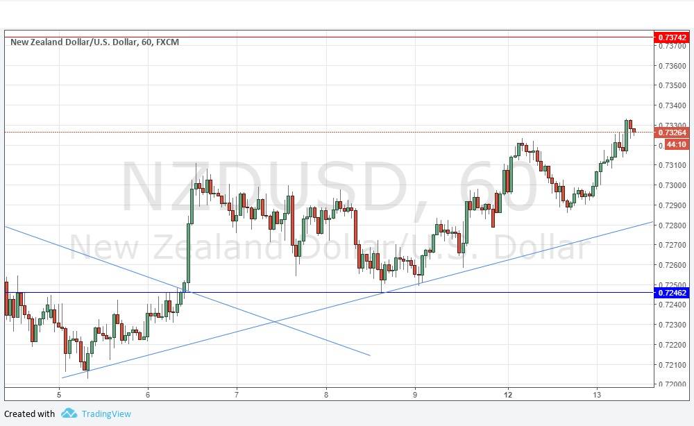 I wrote yesterday that I was taking a bullish bias on this pair today, especially if the price remains above 0.7307. Although the price did briefly dip below that level, the bullish bias paid off, with the price rising clearly and bullishly to make a new high. The entire structure, as shown in the price chart below, is supported by a clear and ascending trend line. Unfortunately, there are no obvious support levels anywhere nearby, but a bullish bounce at the trend line could give a good long trade entry if it happens. There is no reason not to be bullish on this pair as all signs are pointing to still higher prices. There is nothing to stop the resistance level at 0.7374 being reached.