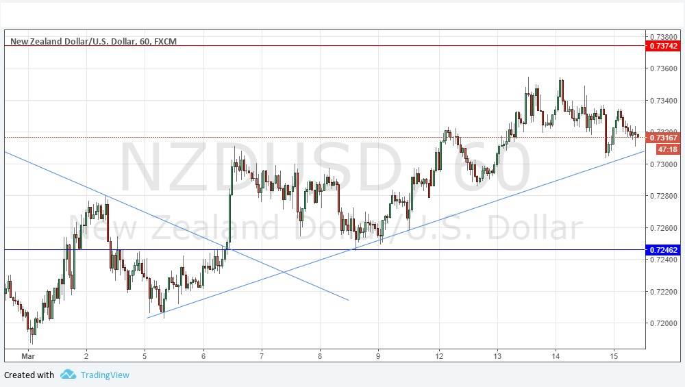 Long entry following some bullish price action on the H1 time frame immediately upon the next touch of the supportive trend line which is currently sitting at about 0.7306.