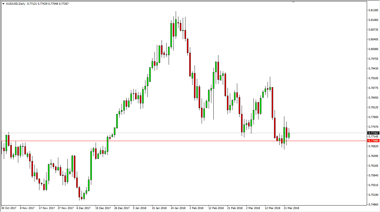 The Australian dollar initially rally during the trading session on Friday but turned around to form a bit of a shooting star. The shooting star since just above the 0.77 handle, an area that should be important as it was previous resistance. We also have an uptrend line underneath near the 0.76 level which keeps the daily uptrend channel intact. I think we are going to be held hostage to rhetoric coming out of the United States and China, just as we are in the USD/JPY pair. If things calm down, this pair goes higher. If they don’t, then this pair goes lower. Australia is highly leveraged to the Chinese economy, so obviously those headlines will have a lot to do with the weather people want to own the Aussie or not.
