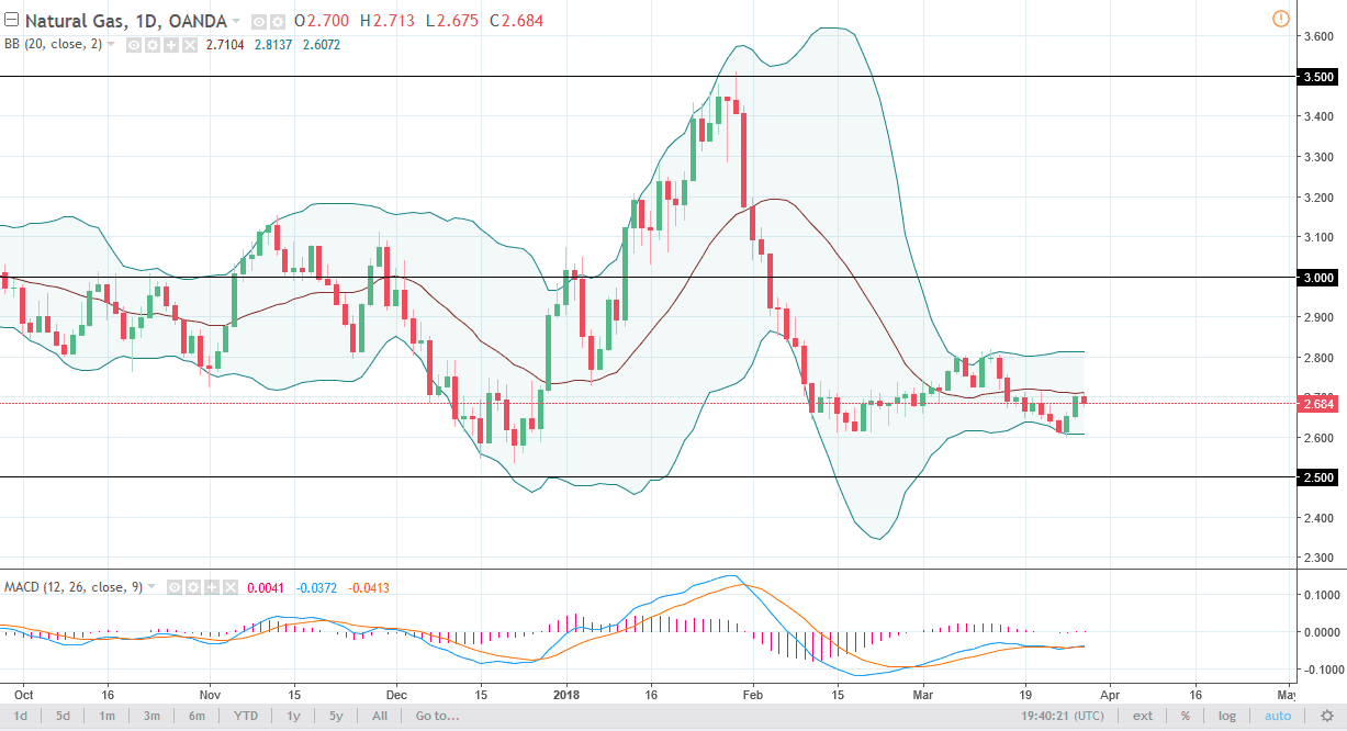 The natural gas markets drifted a bit lower during trading on Wednesday, as the $2.70 level offered a bit of resistance. I think that the market could drift down to the $2.60 level, an area that has shown support several times. I think on the other, if we can break above the top of the range for the day on Wednesday, the market could probably go to the $2.80 level. That’s an area that I think will cause a lot of bit of resistance, and therefore it’s likely that sellers would jump back into this market in that area. I’m looking to short this market every time it rallies, as the fundamentals for natural gas are horrible in general, and if the US dollar rallies, that will be yet another reason this market breaks down.