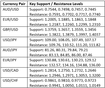 Key Support/Resistance Levels for Popular Pairs
