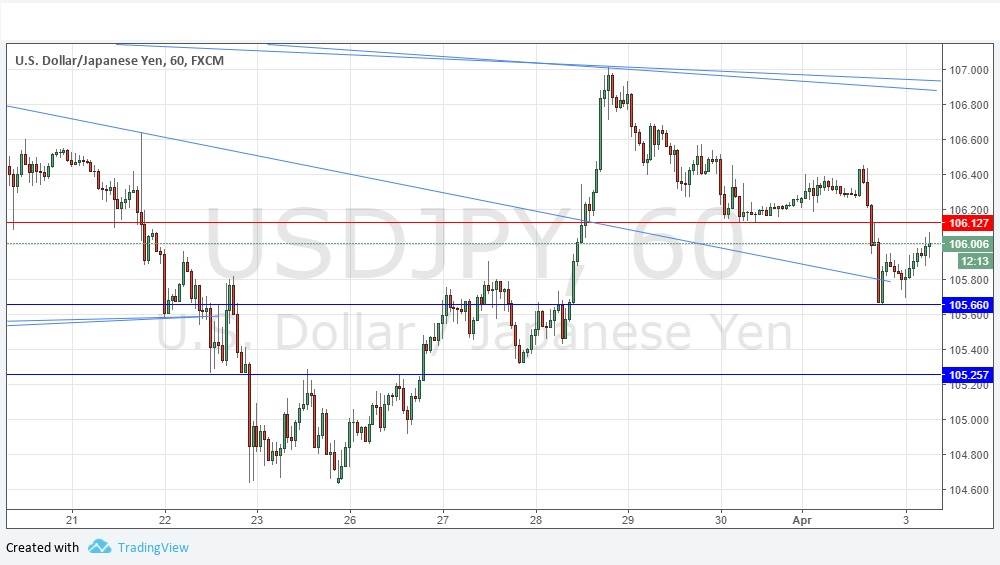 Yesterday’s signals were not triggered, as there was no bullish price action at either 106.10 or 105.90.