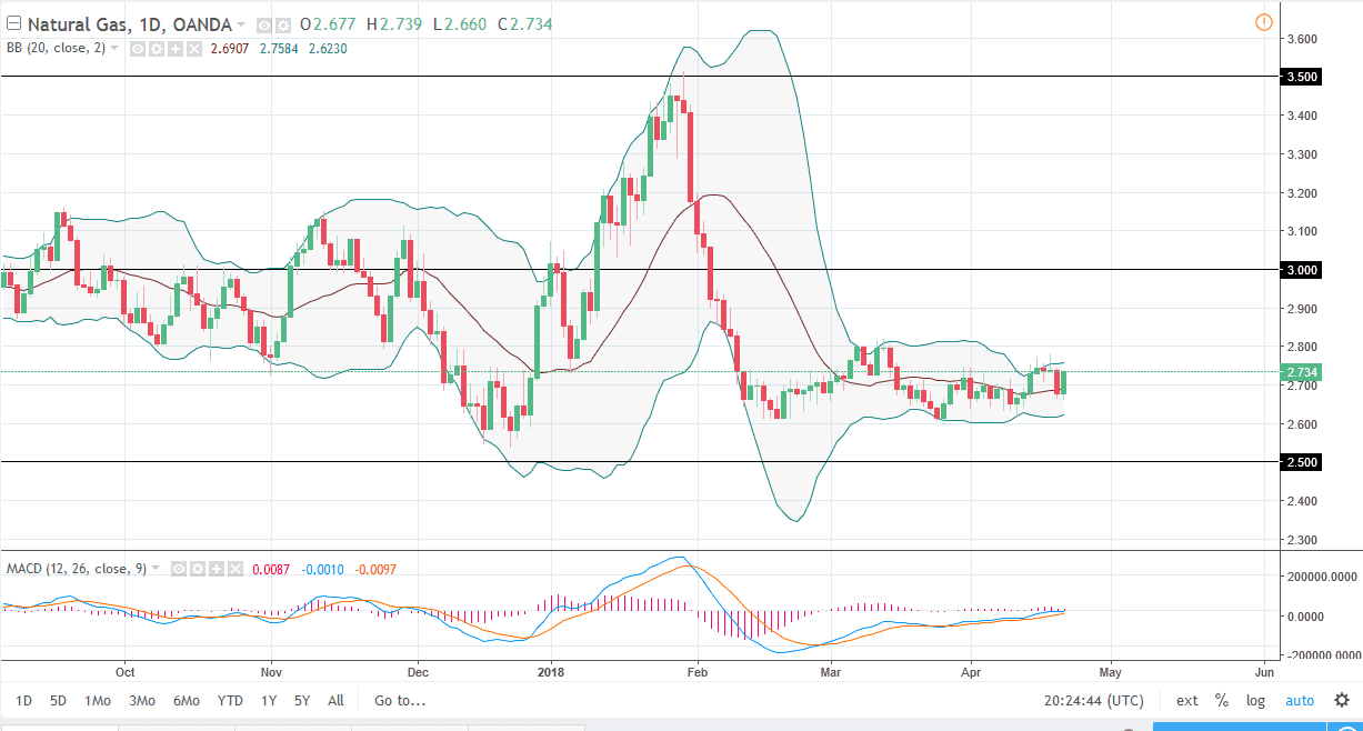 Natural gas markets had a strong session on Friday but remains locked within a tight consolidation range. The $2.60 level at the bottom is support, while the $2.80 level at the top continues to be resistance. I think that the market is probably easier to trade from a short-term chart perspective, and I believe that every time we rally it’s a nice opportunity to start selling as there is no sign of bullish pressure coming into the market as we are oversupplied in natural gas to say the least. I think that we will eventually see sellers come into the market every time it rallies so I plan on taking advantage of that. I believe that the market should continue to be noisy, but I think short-term traders will take advantage of this volatility.
