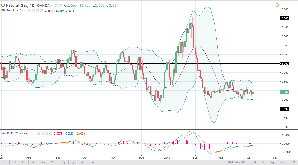 The natural gas markets have rallied a bit during the trading session on Friday as we continue to see a lot of sideways. The market continues to dance around the $2.70 level, and I think that we are more than likely going to continue to see a lot of short-term back and forth. If that’s the case, look for a scalping opportunity when we get either overbought or oversold, using your favorite range bound indicators such as the Stochastic Oscillator. I believe that the $2.80 level above will be resistance, and I would love to start selling near that area if we get the opportunity. Otherwise, if we pull from here I think that the $2.60 level underneath is the beginning of a massive support level. That level extends down to the $2.50 level, so I think that we need to see some type of bounce to start shorting.