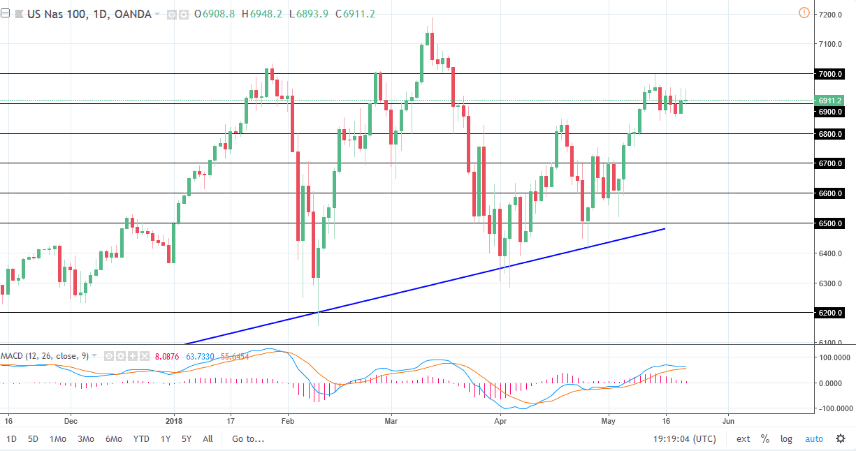 The NASDAQ 100 also tried to rally during the day on Tuesday but turned around form a shooting star as we sit on top of the 6900 level. If we can break below that level, the market could go to the 6850 level, but is going to take a significant amount of momentum to finally break higher. That’s because we had recently tested the 7000 level, which of course is a major psychological barrier. I anticipate that pullbacks will also be buying opportunities over here as well, with the 6800 level being massive support. The markets are concerned by higher interest rates in the United States, but I think in the end that will only end up being a sideshow, as overall economic growth should continue to push this market to the upside longer-term. I don’t have any interest in shorting, I see far too many support levels below.