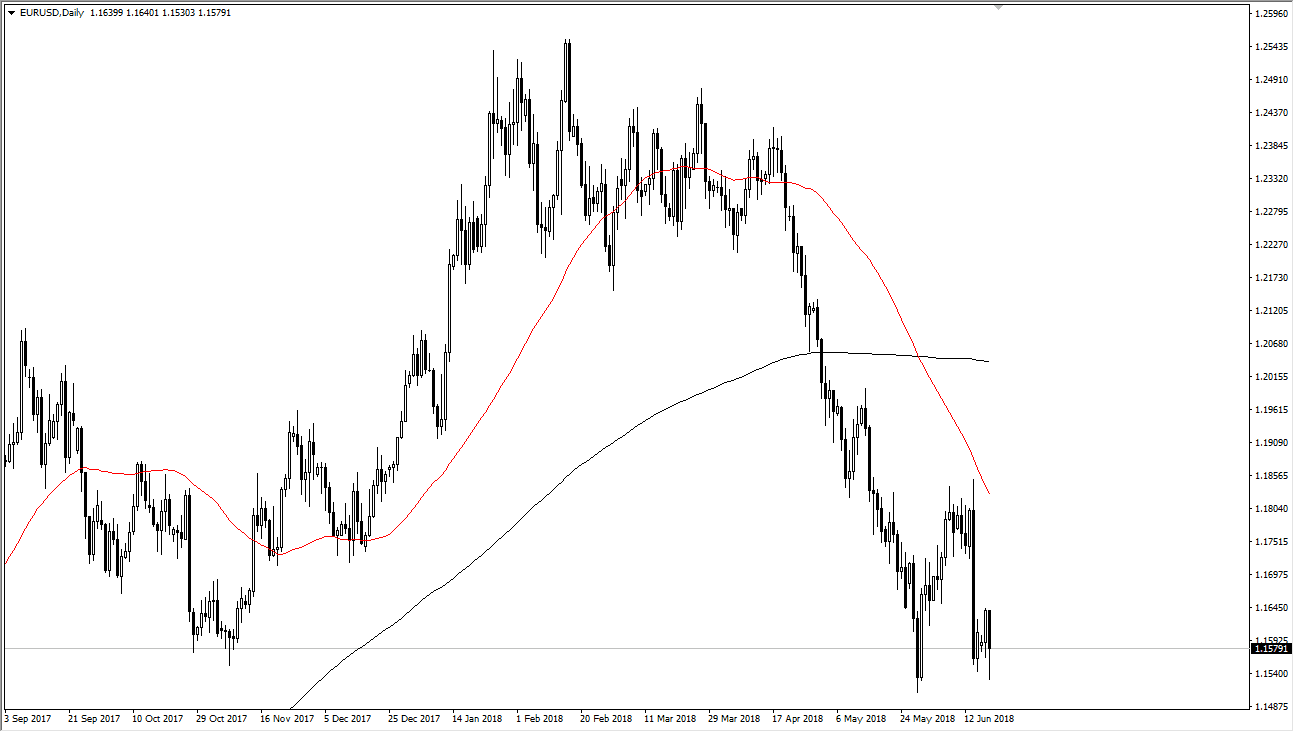 Beyond that, we have been in a negative tone for some time. However, interestingly enough we did not break down to a fresh, new low, and I think that is what we are going to see going forward: massive support near the 1.15 level. That’s an area that will be very difficult to break down, so I suspect that there will be value hunters in that region. However, that is a short-term “smash and grab” trade more than anything else. We have recently made a “death cross” on the chart, so I think the sellers will continue to be very aggressive on rallies. I would prefer to fade rallies and to try to pick the bottom.