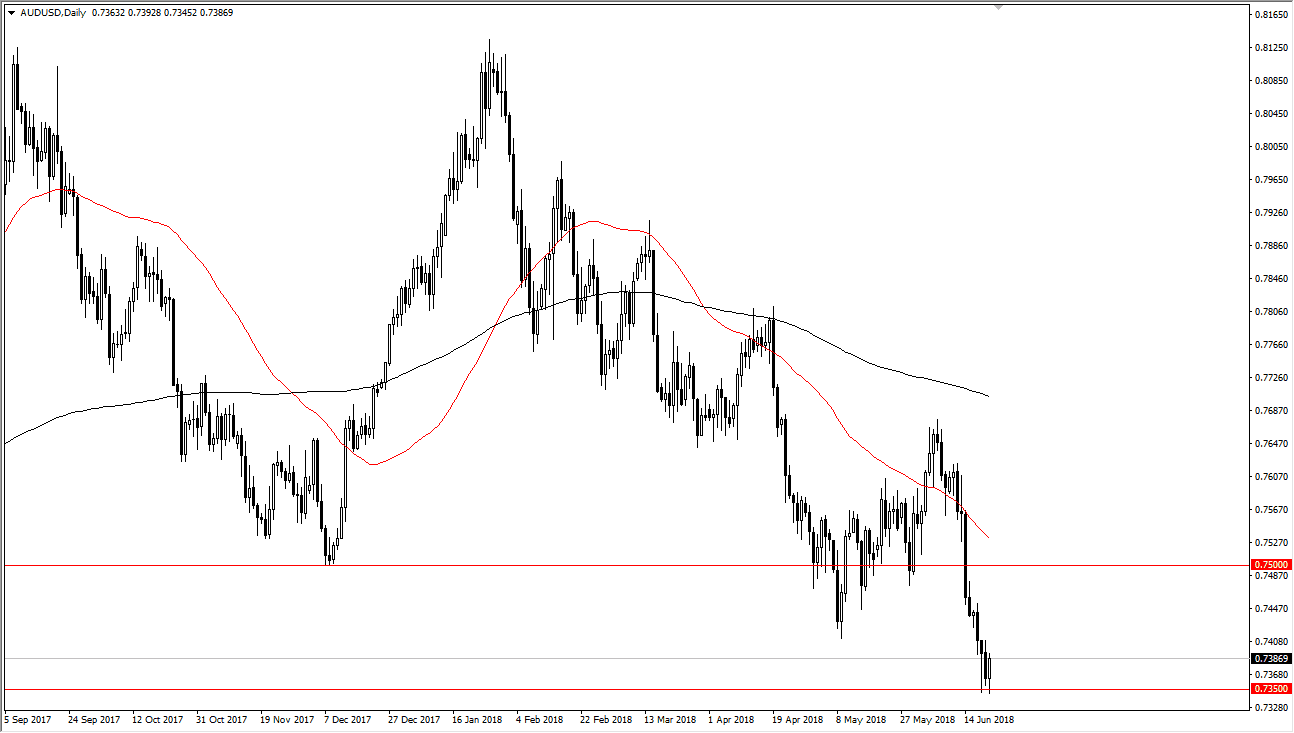 The Australian dollar initially fell during the trading session on Thursday but found enough support at the 0.7350 level to turn things around. This is a very bullish sign, as it is an area that needs to hold to keep the Australian dollar afloat. However, if we were to break down below that level, it would be a very negative sign and I think that it would bring in fresh selling. In the short term, it looks as if we may try to rally towards the 0.74 level, possibly even the 0.75 level. That is an area where I would expect to see a lot of attention, so I think it will be difficult to break above 0.75 with any type of ease. Pay attention to the gold market, because it of course has the usual influence on the Australian dollar. It’s also important to pay attention to the trade spat, because as trade falls, that hurts exports coming out of Australia.