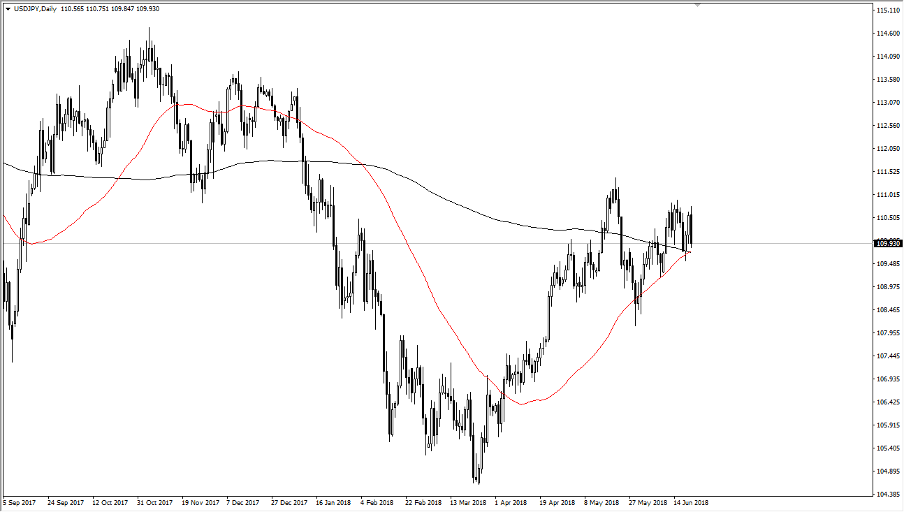 The US dollar initially tried to rally during the day on Thursday but found enough resistance to turn things around and drive down towards the ¥110 level again. This is an area that features a lot of interest, and right now we are currently watching the 50 SMA and 200 SMA Cross on the daily chart. As we are crossing currently, it’s likely that we will see longer-term buyers get interested. I think that this market that is moving essentially based upon the whims and concerns of geopolitical trade. The interest rate differential between the United States and Japan certainly signifies that we should go higher. However, as we worry about tariffs being slapped on China from the Americans, and of course the other way around, it’s likely that the Japanese yen will continue to strengthen if things escalate.