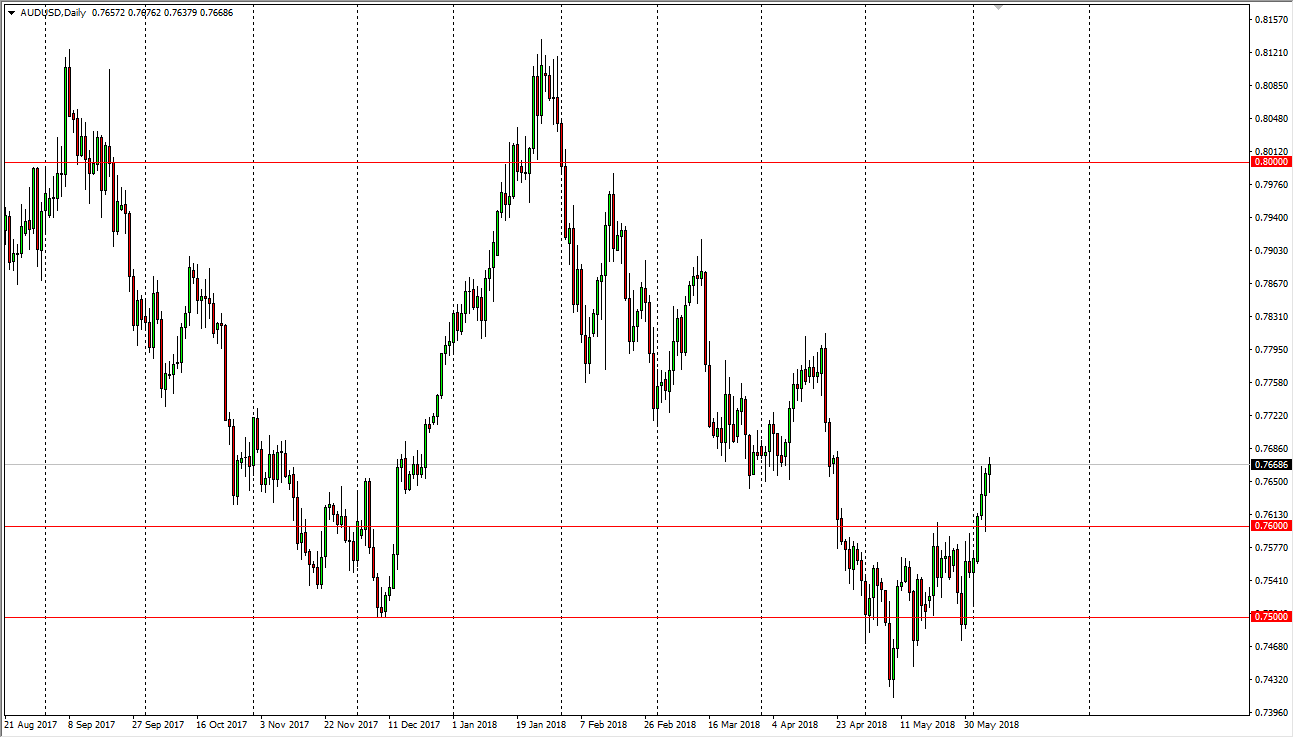 The US dollar has rallied a bit during the trading session on Wednesday, breaking above the vital ¥110 level. The fact that we have done this is a bullish sign, and we have broken above the top of a hammer from the previous session as well as the 200 simple moving average. That’s a very strong sign, and I think we are going to continue to see buyers jump into this market and perhaps try to push it towards the ¥111 level next, and then beyond that the ¥112.50 level. Short-term pullbacks continue to be buying opportunities, unless of course we break down below the ¥109 level which is very negative to say the least. Overall, I do like this pair, and if we can stay out of geopolitical trouble and of course a trade war, it should continue to strengthen overall.