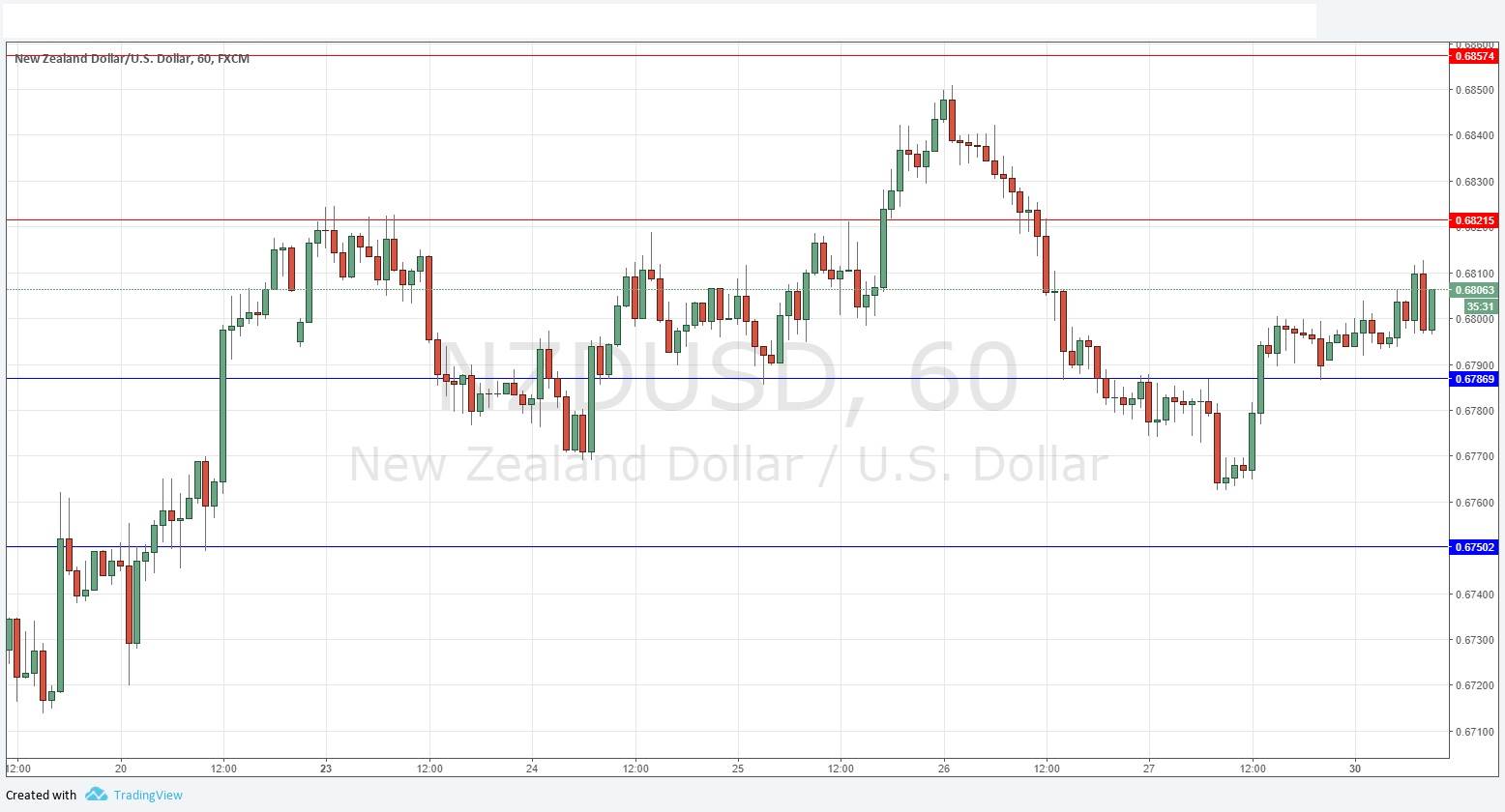I wrote last Thursday that I had a weakly bullish directional bias today again above 0.6822. I was wrong in the movement that I expected, although fortunately by the time the session began, the price was already below 0.6822, where it continued to fall bearishly into Friday. This pair is behaving more reliably that its sister AUD/USD. The resistance at 0.6822 looks likely to be strong, but so does the support at 0.6787. I think rejections of this range can be traded today in either direction. A break above 0.6822 would be a bullish sign, while a break below 0.6787 would be a bearish sign. I have no directional bias if the price remains within this range.