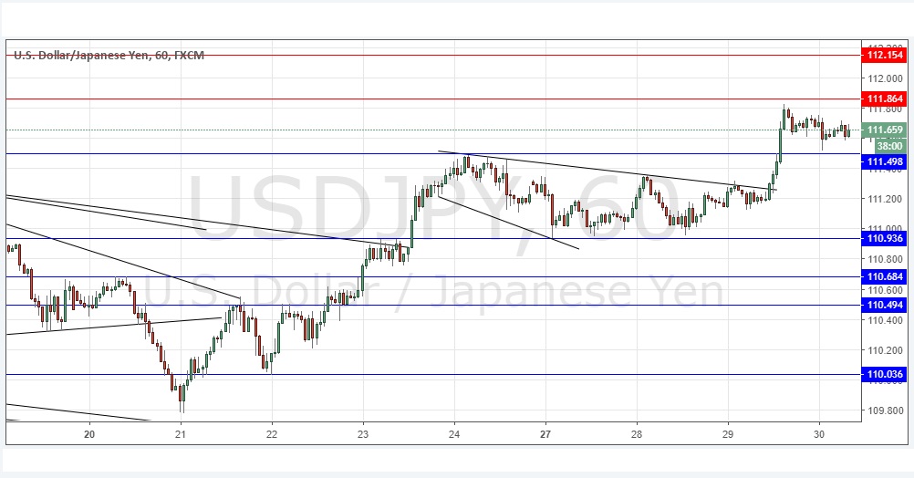 Go short following a bearish price action reversal on the H1 time frame immediately upon the next touch of 111.86 or 112.15.