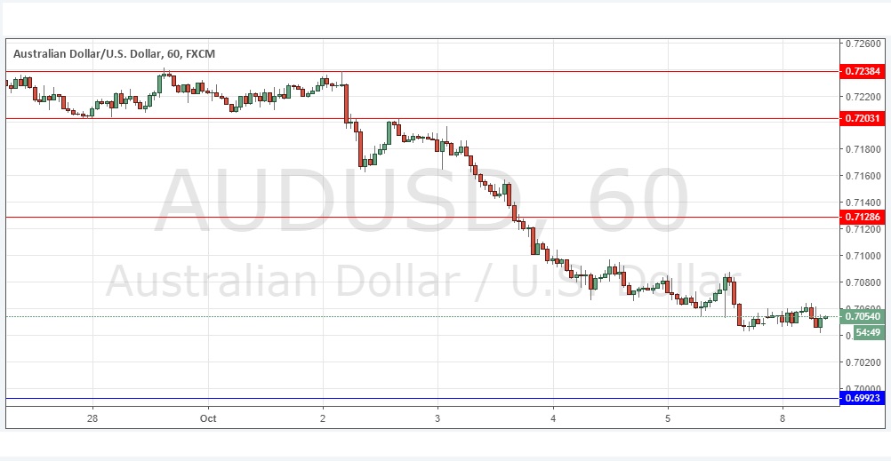 I wrote last Thursday that there was every reason to remain bearish on this pair as the USD was still advancing very strongly here on the short-term time frames. This price was at a 2.5-year low and looked set to continue down to the psychologically important 0.7000 level where the fall might halt. The price has continued to fall gently so it was slightly correct to be bearish, but the price has not yet reached the key psychological level at 0.7000. It still looks slightly bearish, or at least the Australian Dollar looks very weak, but a move up looks only very slightly less possible over the short-term than a move down.