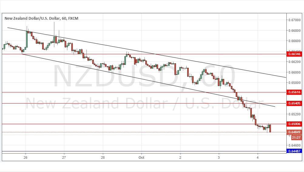 I wrote yesterday that I would be bearish after a strong pullback followed by a clear bearish reversal close to the round number above at 0.6600. This didn’t happen: the price just started falling and kept falling, breaking below the lower trend line of the bearish price channel which is all shown within the price chart below. There is every reason to remain bearish on this pair today as the USD is still advancing very strongly here on the short-term time frames. This price is at a 2.5-year low and looks set to continue down having broken below the psychologically important 0.6500 level.