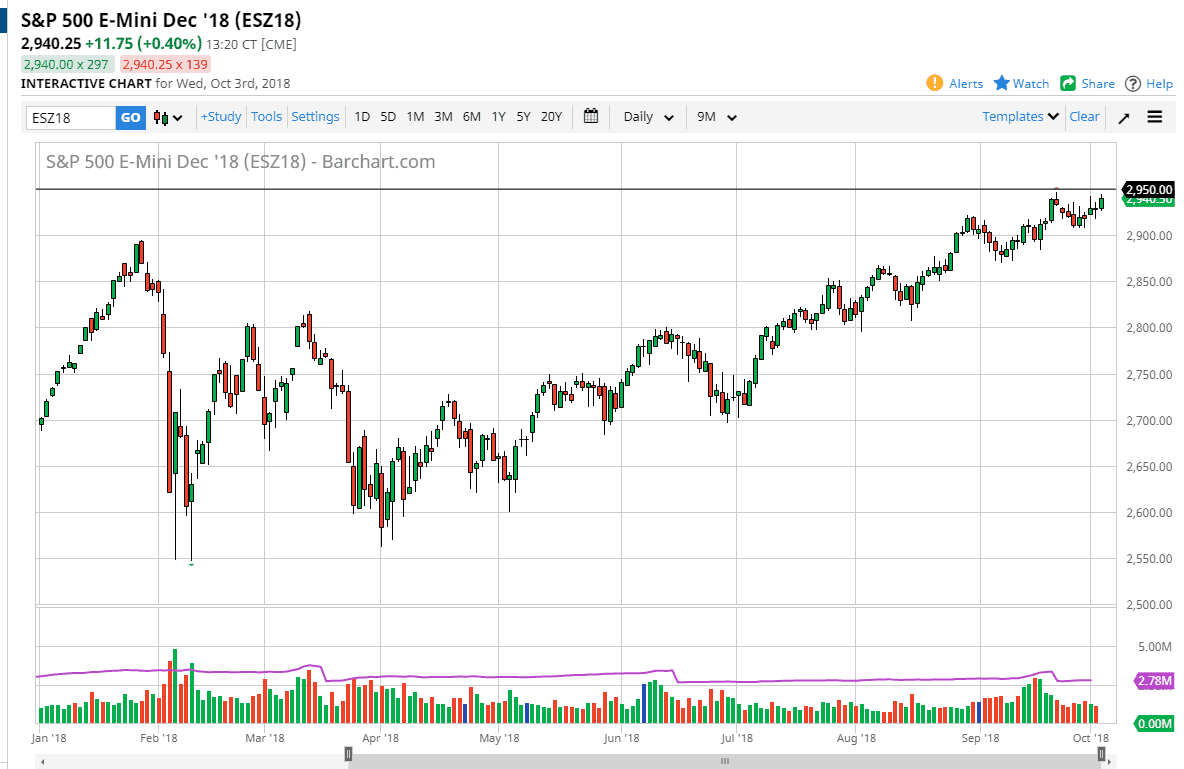 The S&P 500 has rallied a bit during the trading session on Wednesday, reaching towards the highs again. It looks like it is going to be difficult to break above the 2950 level and considering that tomorrow is going to be Nonfarm Payroll Friday, I wouldn’t expect it to. I think in the short term we are probably going to go sideways more than anything else as traders won’t want to be exposed to too much risk. However, the ADP jobs number came out during the Wednesday session quite strong, so we may also get people trying to front run the move. If that’s the case, we could find ourselves well above the 2950 handle, and that opens the door to the 3000 level longer term, which I do in fact believe happens eventually. Pullbacks continue to be buying opportunities.
