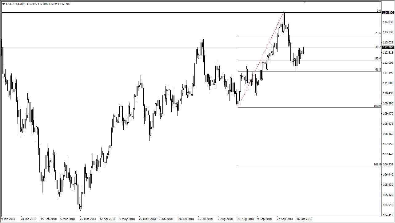 The US dollar has rallied against the Japanese yen, breaking above the highs from the last couple of days. We obviously have a lot of resistance above, and of course the markets are ready to quite go anywhere yet but it does look like we are trying to grind higher more than anything else. After bouncing from the 61.8% Fibonacci retracement level, for me it makes sense that we would rally from here and continue to go higher. The ¥114.50 level above is significant resistance I think it is only a matter time before we test that level again. It makes sense that we pull back after yet another attempt upon that crucial level, but I do think eventually we break above there based upon interest rate differential. Beyond that, if we can get a little bit of a “risk on” rally, then that could move this market higher as well. A break down below the ¥111.50 level would be very negative indeed.