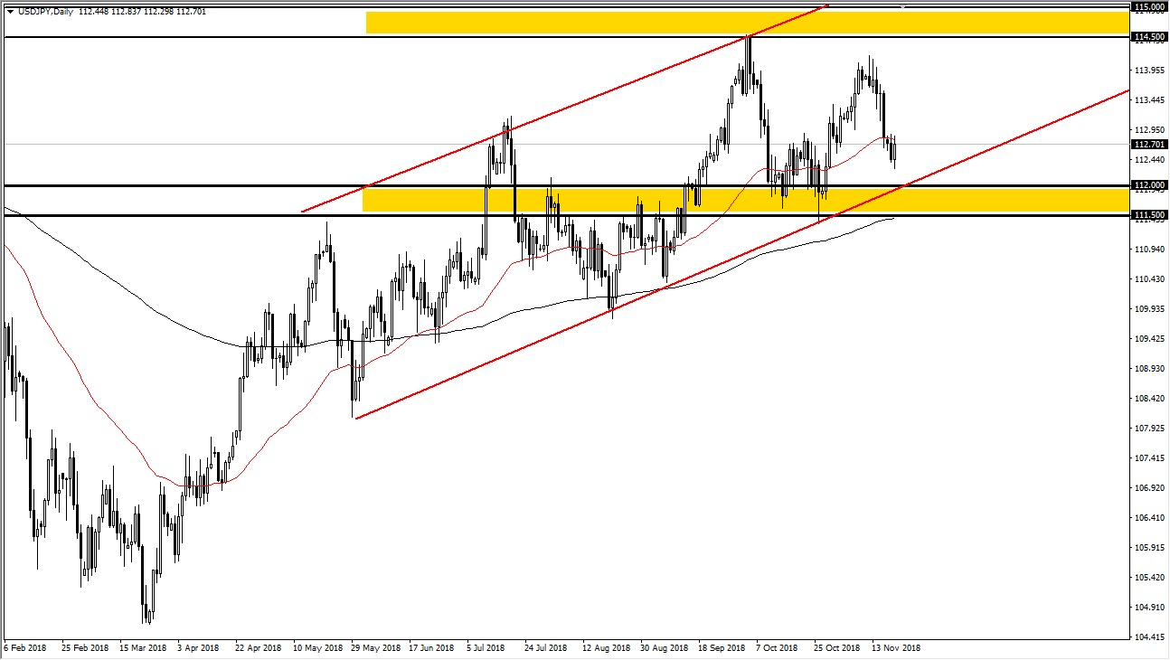 The Australian dollar got hammered during trading on Tuesday, reaching down towards the 0.72 handle. That’s a very negative looking candle that I’m seeing for the day, I think it shows just how much trouble we have in this market due to the US/Chinese trade spat. I think that continues to be an issue, and I think that the Australian economy will of course continue to be at the mercy of the US and China. The 0.70 level underneath is my target, and I think it should be massive support. However, if we break down below that level it’s very likely that we will go to the 0.68 level. I expect that happens relatively soon though, because we will get through the Argentina G 20 meetings without any type of good news from what I see.