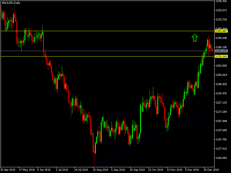 Gold prices are in a bearish correction for 4 days in a row, reaching to $1279 an ounce, with the return of trader’s optimism towards the possibility of a trade agreement between the USA and China. Until this moment, the gold price was able to move towards the psychological peak at $1300 an ounce.