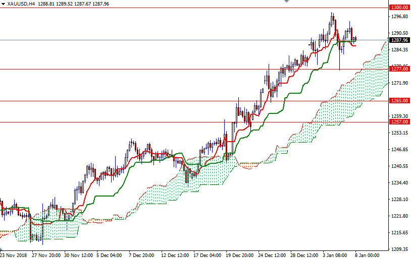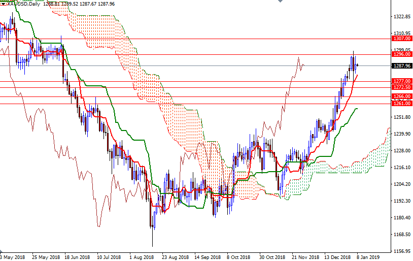XAU/USD is trading above the Ichimoku clouds on the daily and the 4-hourly charts, suggesting that the bulls have the overall technical advantage. However, we have negative Tenkan-Sen (nine-period moving average, red line) - Kijun-Sen (twenty six-period moving average, green line) crosses on the H1 and M30 charts. It looks as if the market will test an intra-day support in the 1285.60-1284 zone. The 4-hourly Tenkan-Sen and the bottom of the hourly cloud converge in this area so the bears need to drag prices below 1284 to challenge 1282. If prices dive below 1282, the next stop will be 1279/7.