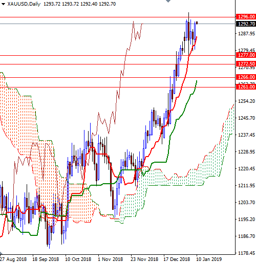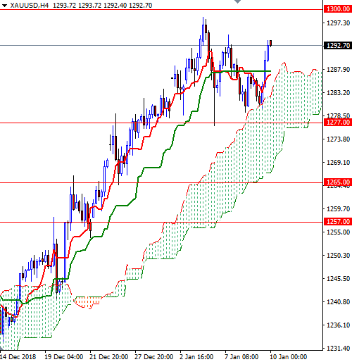 The first upside barrier comes in around 1296 near the top of the weekly cloud. That is followed by the psychologically important 1300 level. A successful break above 1300 implies that the market is heading towards 1307/4. To the downside, keep an eye on the 1287.30-1286 zone where the Tenkan-sen and the Kijun-sen converge on the H4 chart. The bears have to pull prices below 1286 to test 1284/3 and 1280/79. The bottom of the 4-hourly cloud sits in the 1277/6 zone so if prices drop below 1276, look for further downside with 1274 and 1272.50-1270 as targets.
