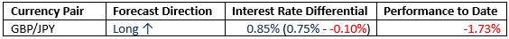 For the month of March, we forecasted that the best trade would be long GBP/JPY. The forecast’s performance to date is shown below: