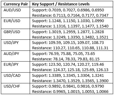 We teach that trades should be entered and exited at or very close to key support and resistance levels. There are certain key support and resistance levels that should be watched on the more popular currency pairs this week, which might result in either reversals or breakouts: